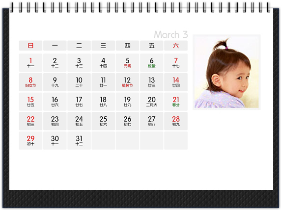 经典传统款的个性台历,两面皆可放置照片