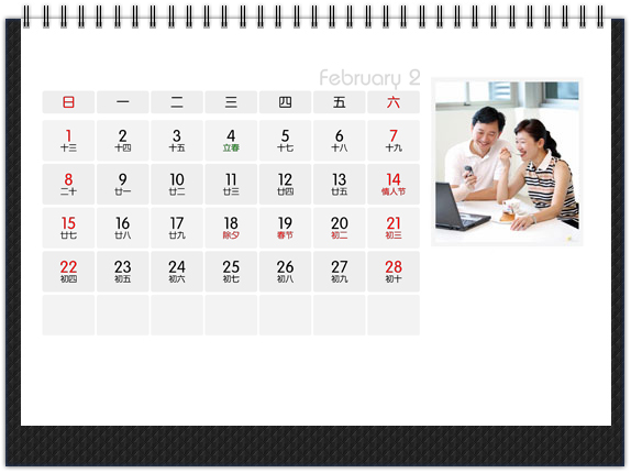 经典传统款的个性台历,两面皆可放置照片