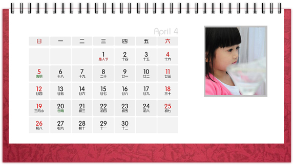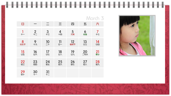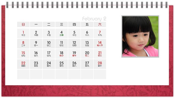 个性台历是一种创意,也是一种时尚,把自己喜欢的图案、照片、亲人的照片印上个性台历,365天的陪伴不是梦。个性台历既是装饰也是礼物,可以把它放在客厅或办公桌上做摆设,也可以送给亲朋好友做礼物。