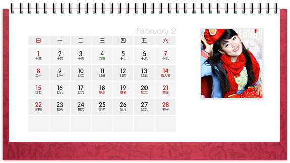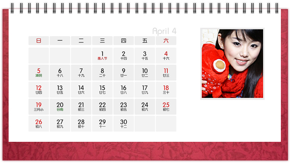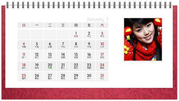 个性台历是一种创意,也是一种时尚,把自己喜欢的图案、照片、亲人的照片印上个性台历,365天的陪伴不是梦。个性台历既是装饰也是礼物,可以把它放在客厅或办公桌上做摆设,也可以送给亲朋好友做礼物。