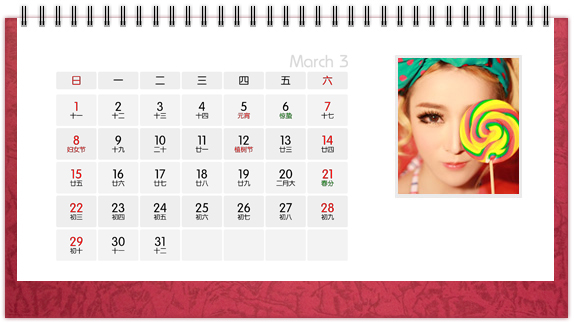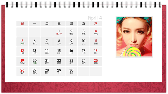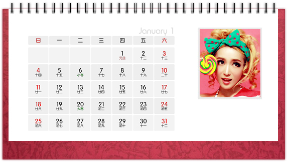 个性台历是一种创意,也是一种时尚,把自己喜欢的图案、照片、亲人的照片印上个性台历,365天的陪伴不是梦。个性台历既是装饰也是礼物,可以把它放在客厅或办公桌上做摆设,也可以送给亲朋好友做礼物。