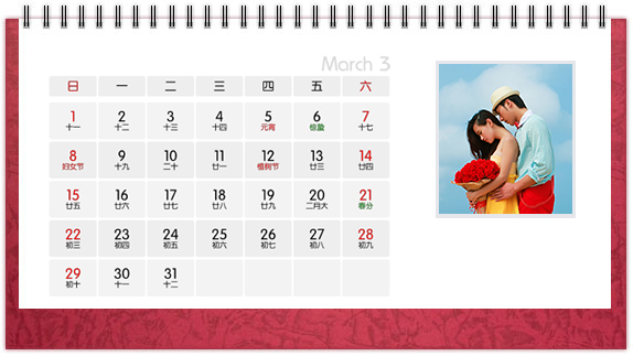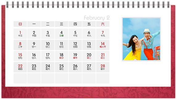 个性台历是一种创意,也是一种时尚,把自己喜欢的图案、照片、亲人的照片印上个性台历,365天的陪伴不是梦。个性台历既是装饰也是礼物,可以把它放在客厅或办公桌上做摆设,也可以送给亲朋好友做礼物。