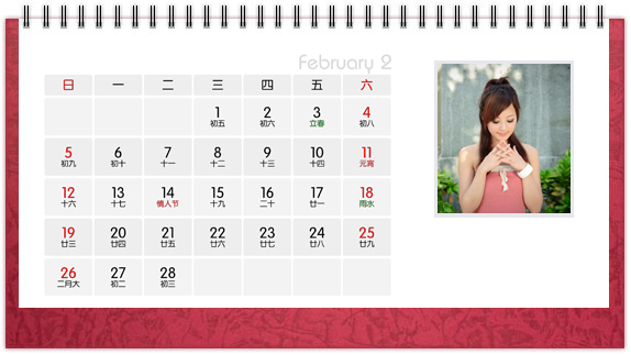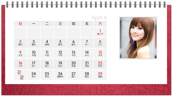 个性台历是一种创意,也是一种时尚,把自己喜欢的图案、照片、亲人的照片印上个性台历,365天的陪伴不是梦。个性台历既是装饰也是礼物,可以把它放在客厅或办公桌上做摆设,也可以送给亲朋好友做礼物。