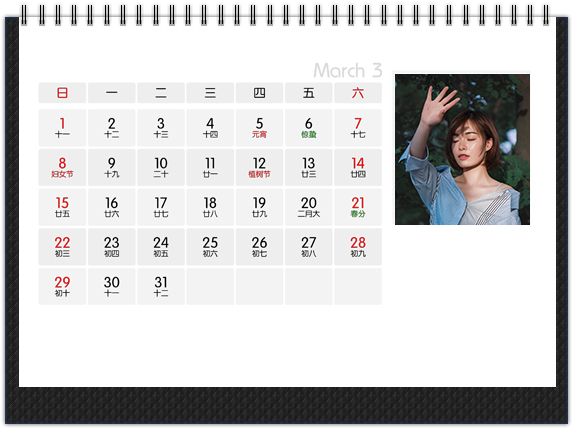 经典传统款的个性台历,两面皆可放置照片